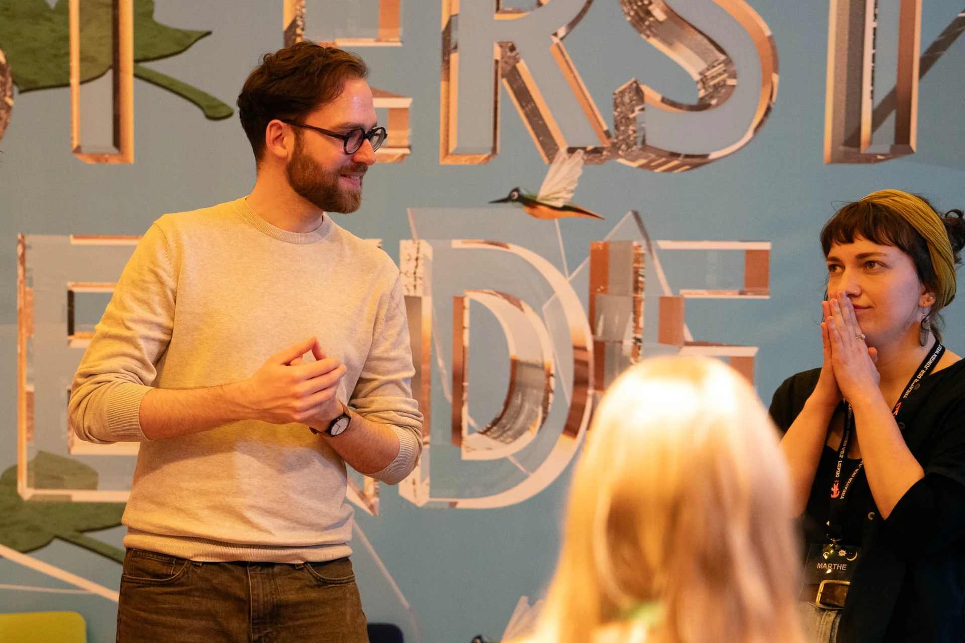 Ein sprecherischer Brückenschlag von der Bühne ins Publikum.